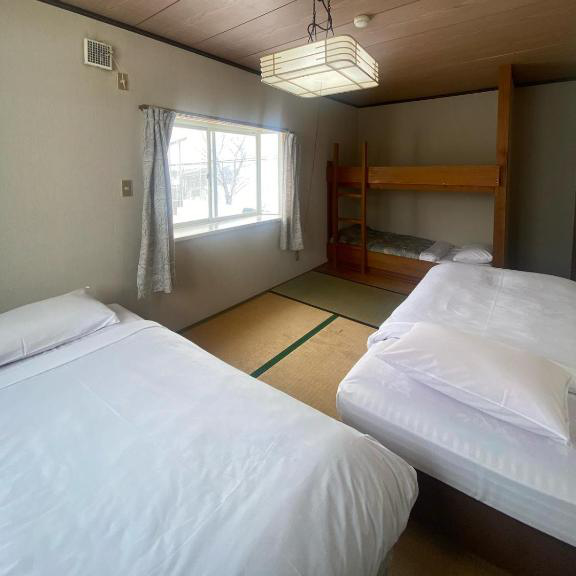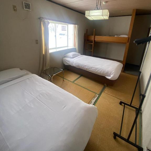 This Budget Triple Room features 3 single western style beds with shared shower and toilet facilities. You have the choice of a Japanese style shared shower room or private communal showers. It features a clothes hanging rack, heating and linen.
