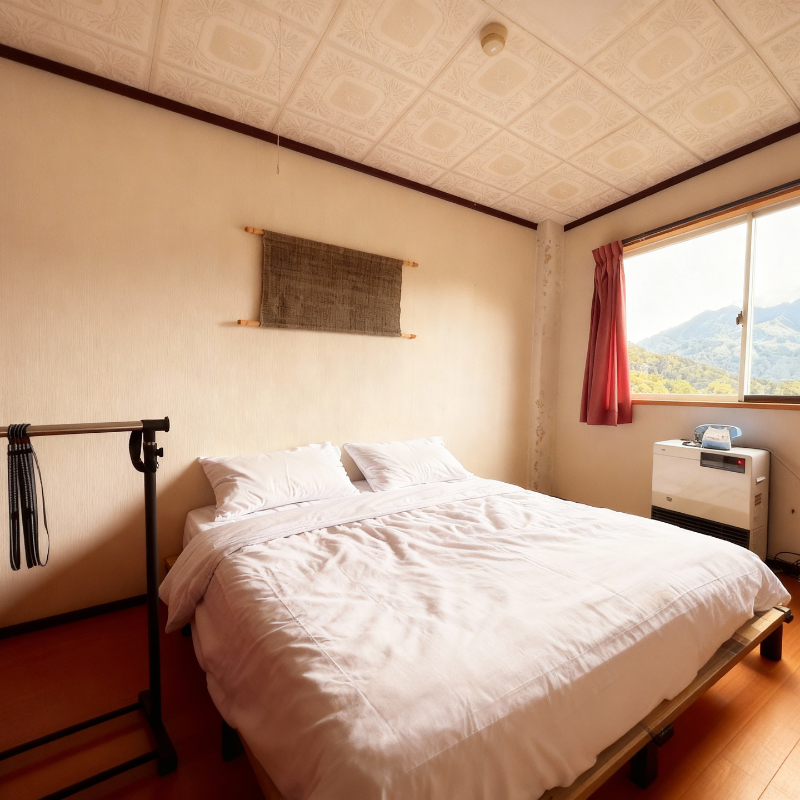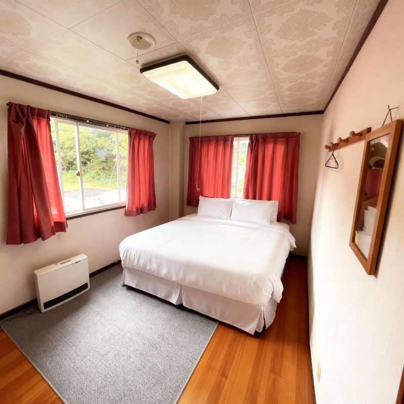 This Queen Room features 1 queen western style bed with Japanese style shared shower and toilet facilities. It features clothes hanging rack/storage, heating and linen.