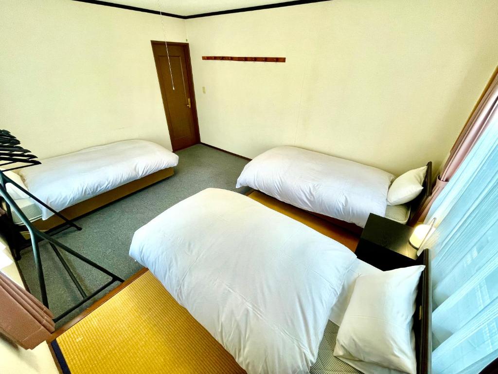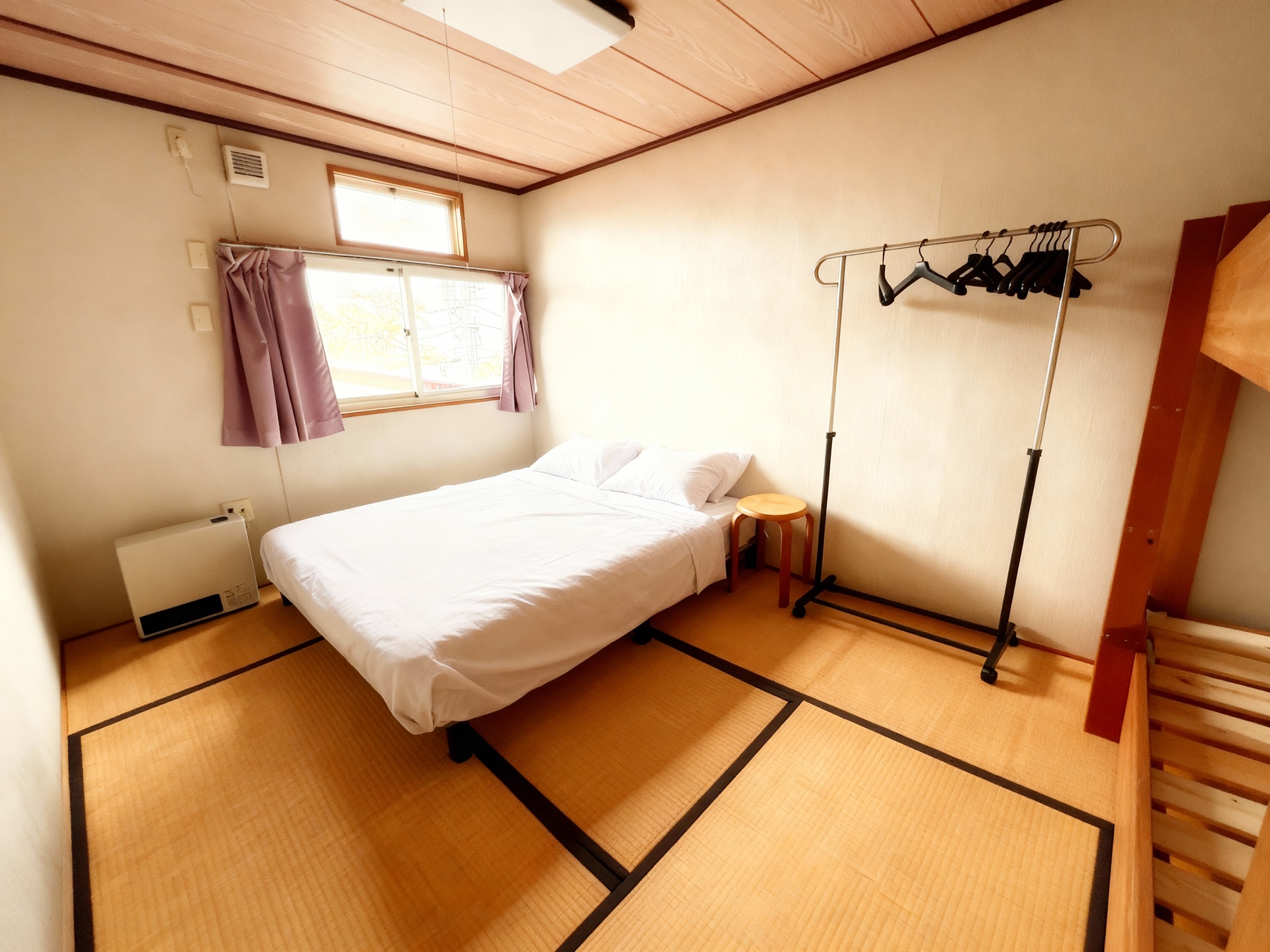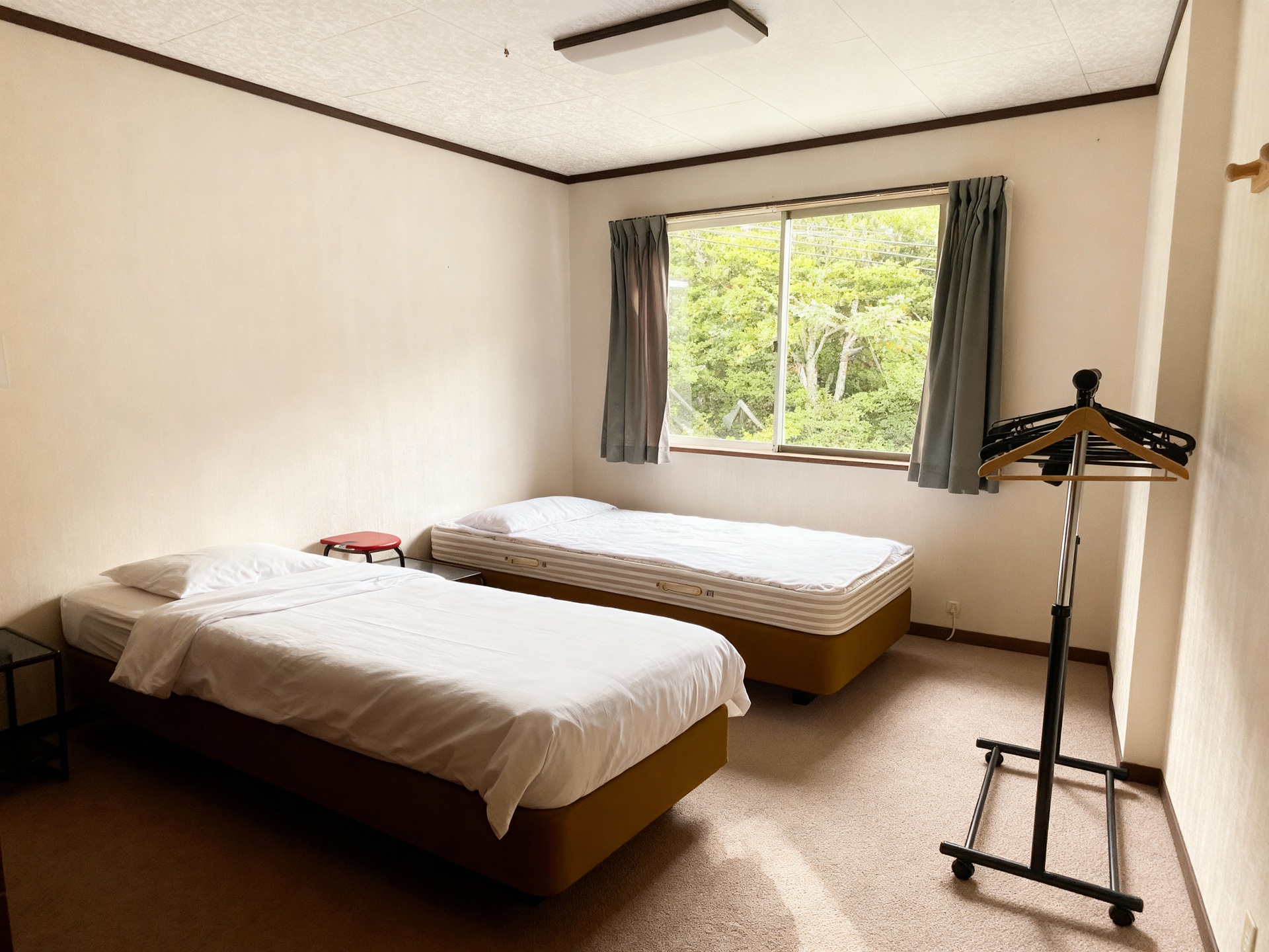 This Double Room features 2 single western style beds with shared shower and toilet facilities. You have the choice of a Japanese style shared shower room or private communal showers. It features a clothes hanging rack, heating and linen. Both guys and girls are welcome.
